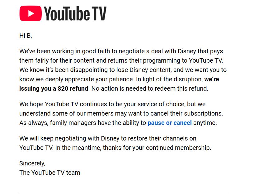 YouTube TV refunds are being issued.