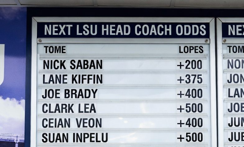 Believe it or not, the betting board has former LSU and Alabama head coach Nick Saban as the favorite to take over in Baton Rouge. Kiffin, Joe Brady, Clark Lea, and Sumrall have also been mentioned as candidates.